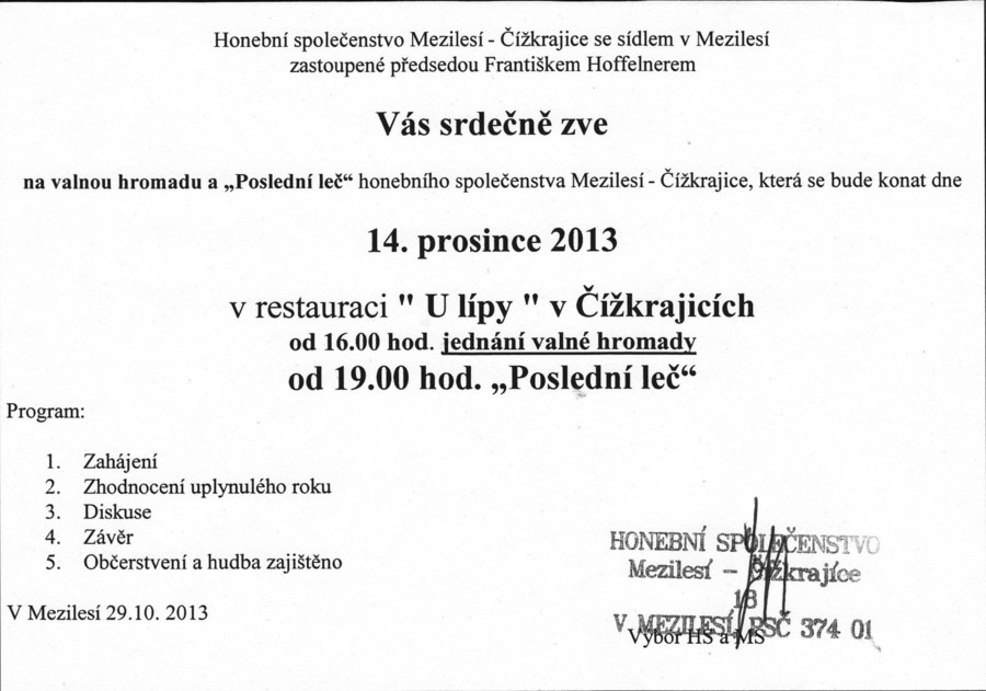 Úvod > Aktuality > Pozvánka na POSLEDNÍ LEČ